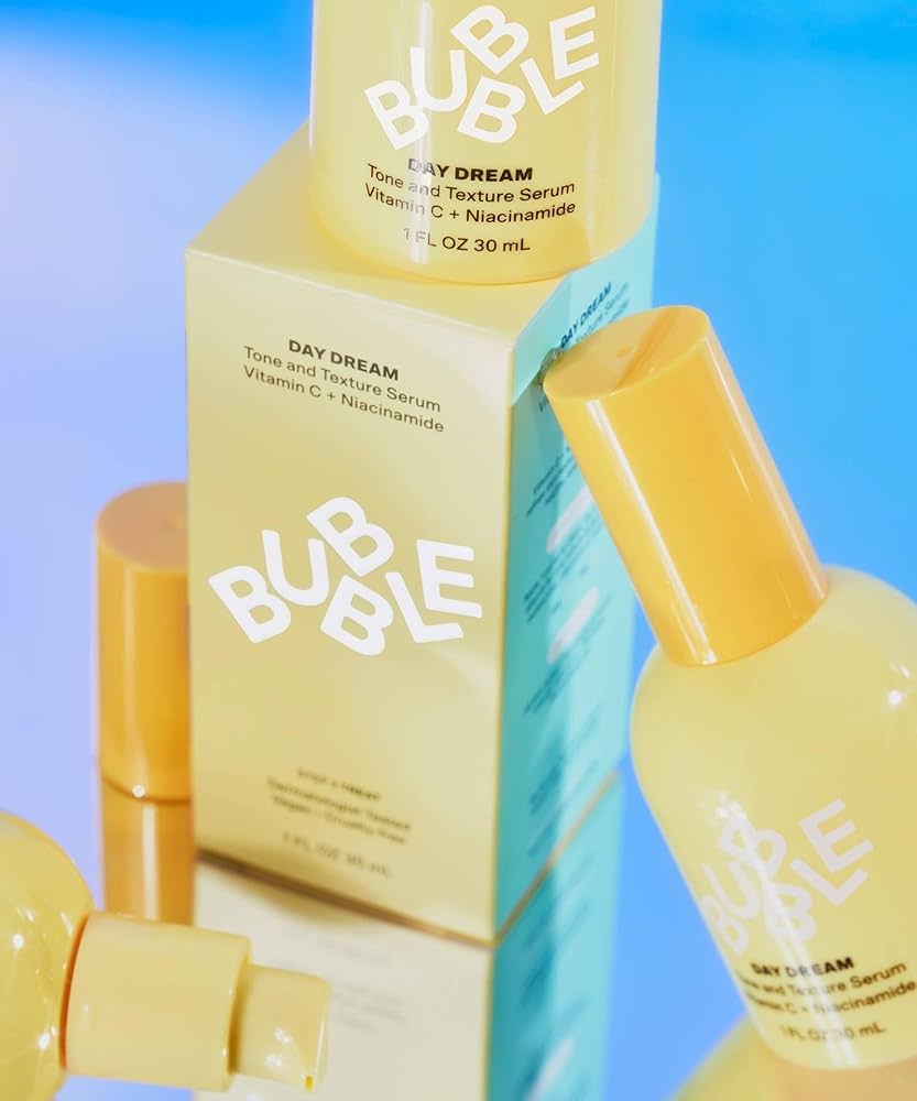 - Bubble Day Dream 維他命C+煙酰胺亮膚精華是一款日用亮白精華,專為提亮膚色、淡化暗沉與均勻膚質設計。結合穩定型維他命C、煙酰胺與阿魏酸,這款清爽配方能溫和改善膚色不均、撫平肌膚紋理,讓肌膚由內而外煥發自然光采。