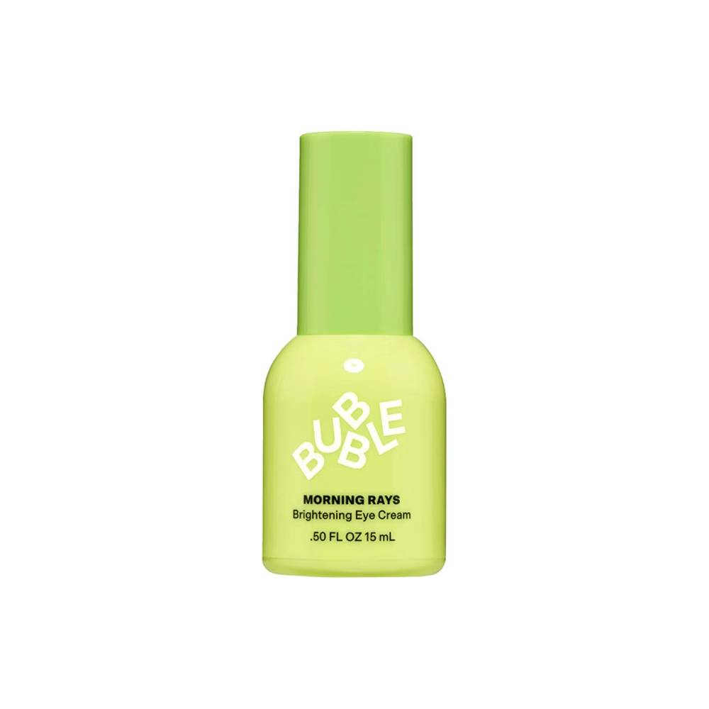 - Bubble Morning Rays 亮采眼霜是一款質地輕盈、吸收迅速的眼部保養品,專為提亮、保濕與淡化浮腫設計。富含煙酰胺、維他命C與咖啡因,能有效改善黑眼圈與眼部倦態,讓眼周肌膚煥發自然光采。